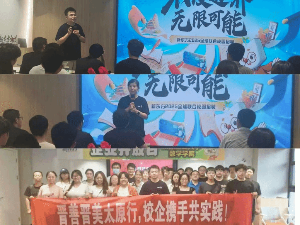 实践活动的最后一站,实践队来到了新东方太原学校。大家不仅参观了学校现代化的教学设施和办公区域,还通过与学校人力资源部老师的交流,深入了解了新东方教育科技集团的发展历程及其在电商、文旅等领域的转型之路,切身感受了教培行业标杆的韧性与创新力。