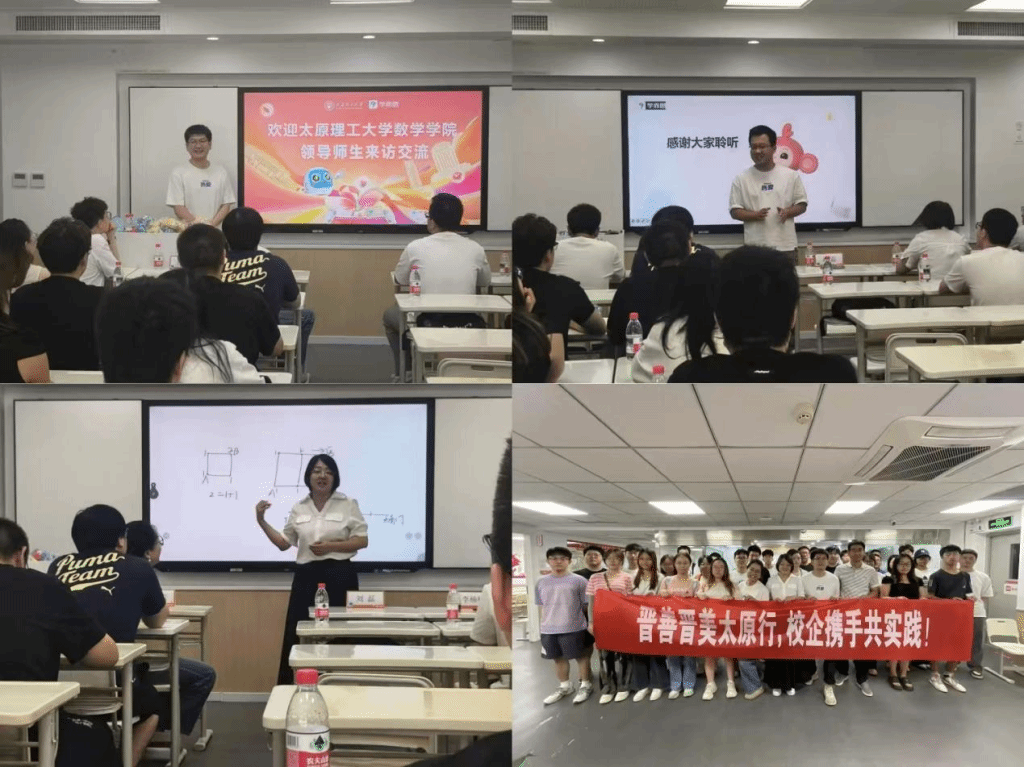 7月8日上午,实践队到访学而思太原分校。学而思的领导们详细介绍了学而思的发展历程、教学理念与业务布局,重点阐释了“爱与科技助力终身成长,成为持续创新的组织”的使命愿景。大家不仅参观了校区环境、体验了生动的课堂教学,更被企业深耕教育的初心与创新氛围所感染,对教培行业的运营模式与教育者的责任有了新的思考。
