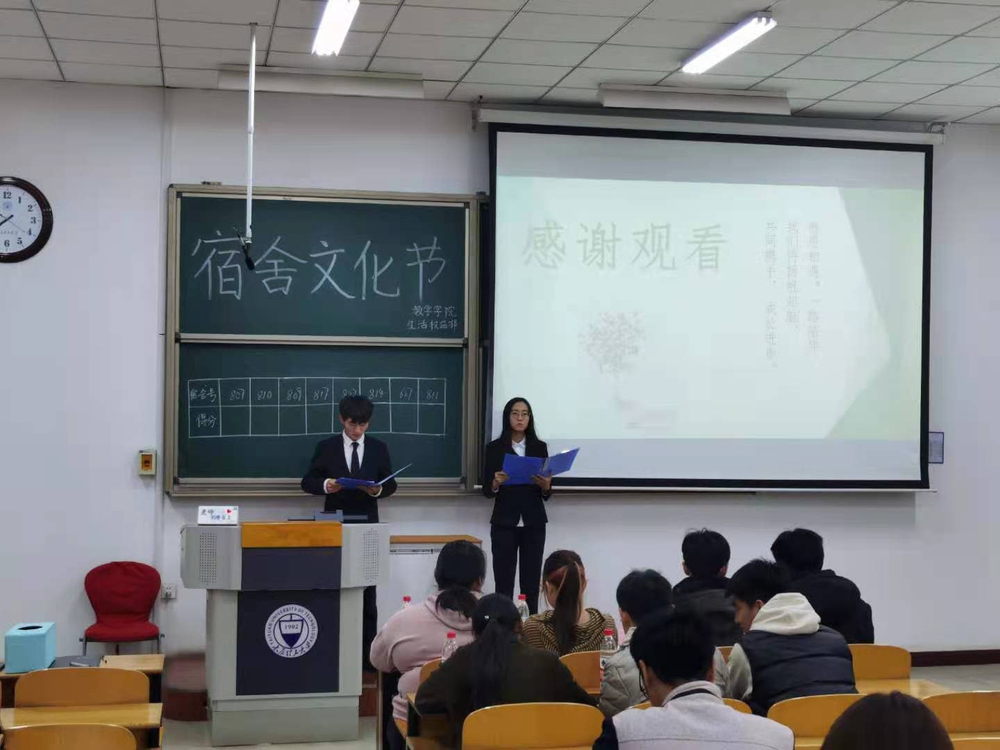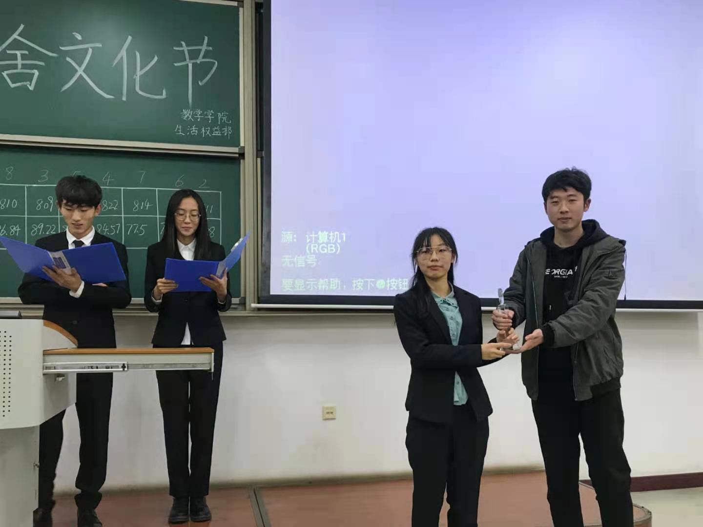 本次活动历经学生宿舍报名和学生网上投票两个环节,最终选出八个宿舍进入决赛,决赛现场通过PPT和视频展示的方式评选出一等奖一名,二等奖一名,三等奖一名,优秀奖五名。决赛现场,每一个参赛宿舍都带来了精彩的演讲,展现了一个个温馨的宿舍以及发生在宿舍的温馨故事。一张张优美的照片,一个个动人的故事,让同学们不仅看到了舍友之间的情谊,也看到了学生对美好生活的向往。决赛结束后,学院为获奖宿舍颁发奖杯,并由工作人员发送奖品。其中807宿舍获得一等奖,811宿舍获得二等奖,809宿舍获得三等奖,822、817、627、814、810宿舍均获优秀奖。
